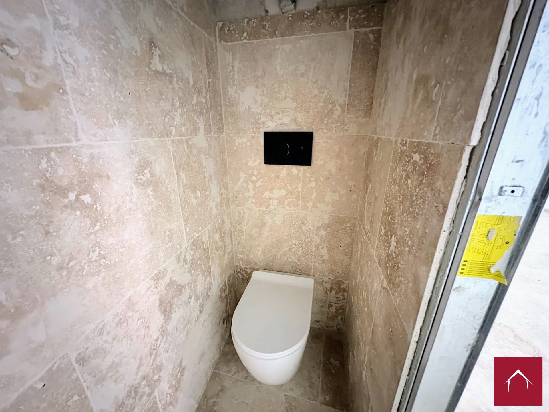 L’immobile è composto da tre piani; al piano terra troviamo zona giorno con bagno di servizio, al primo piano disimpegno, camera da letto matrimoniale, cabina armadio e secondo bagno, invece al secondo piano, terrazzo, inoltre, dispone di Infissi a taglio termico, pavimento in travertino e rubinetteria nero opaco.