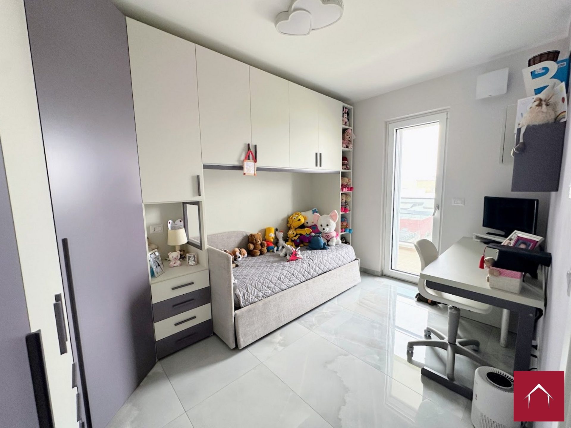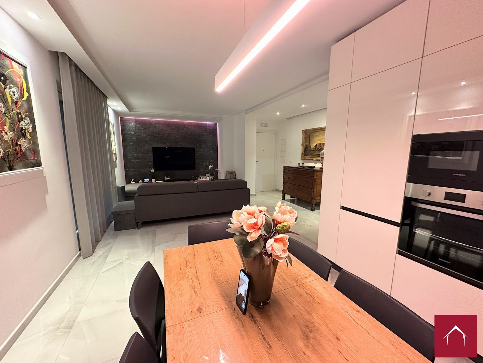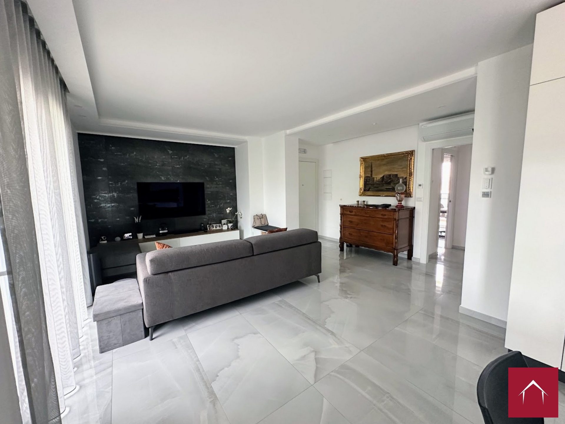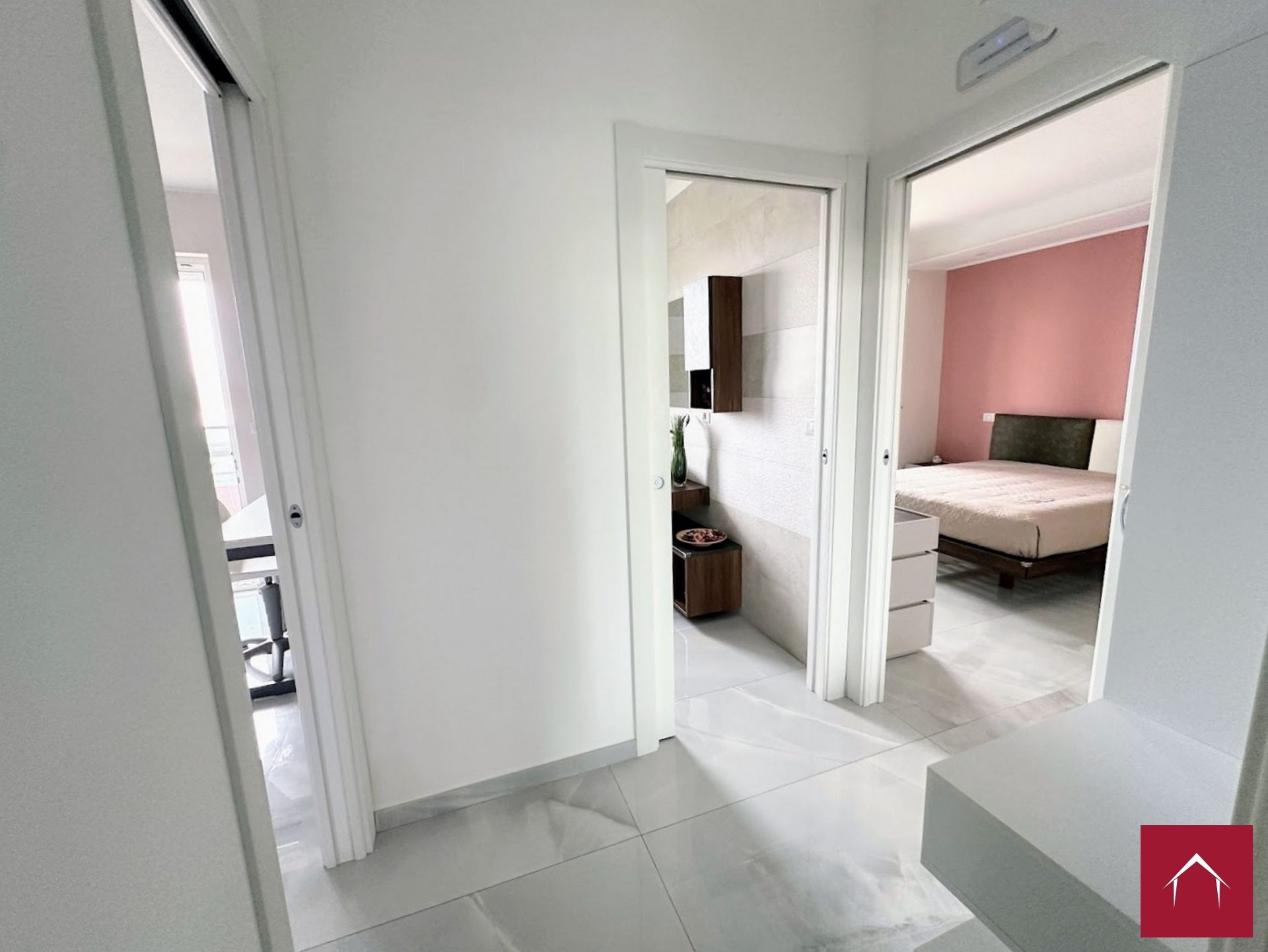 L’immobile è composto da ampia zona living, ampi balconi in zona giorno e zona notte, che rendono l’immobile luminosissimo e arieggiato, disimpegno, due camere da letto e due bagni.