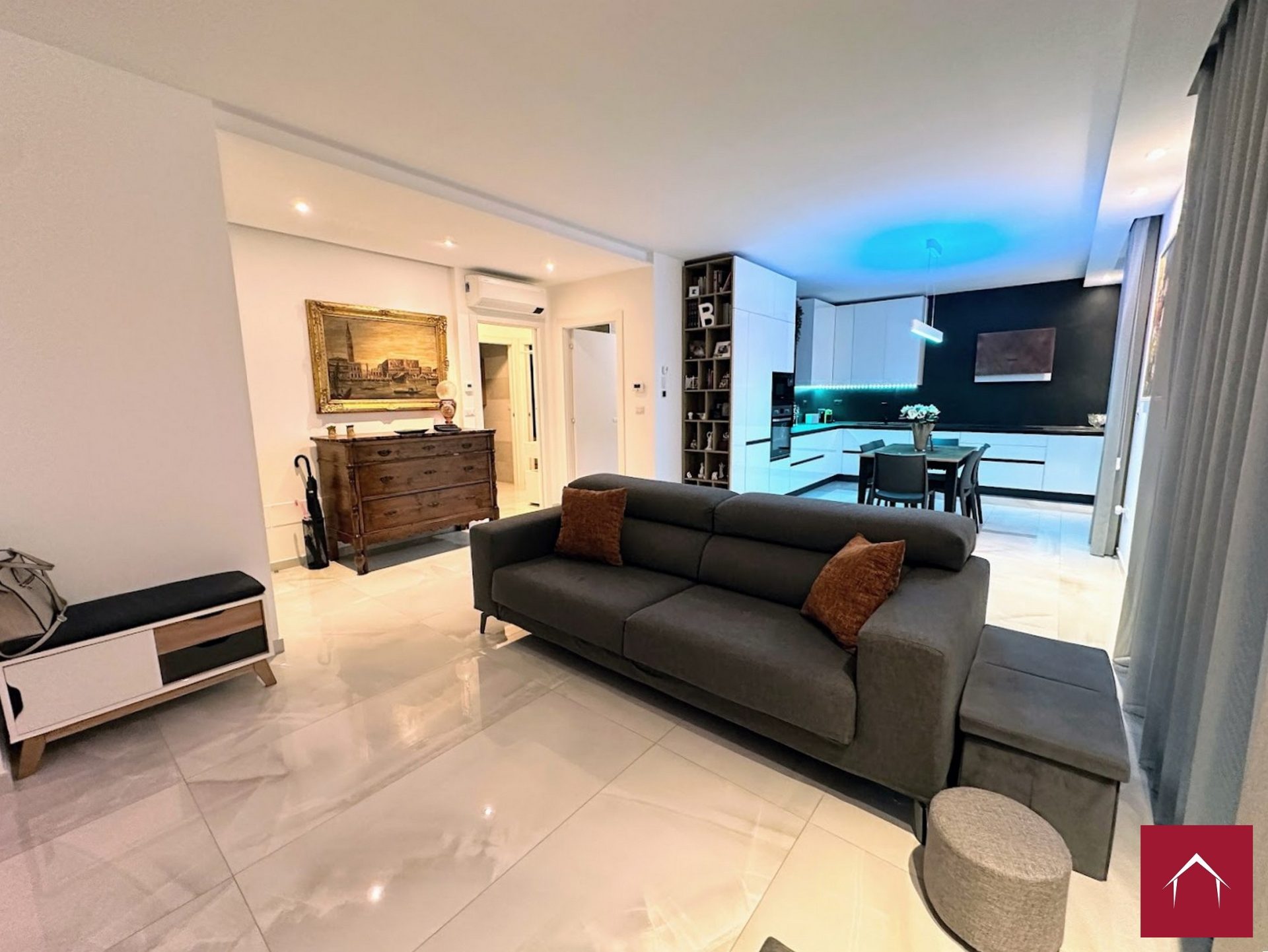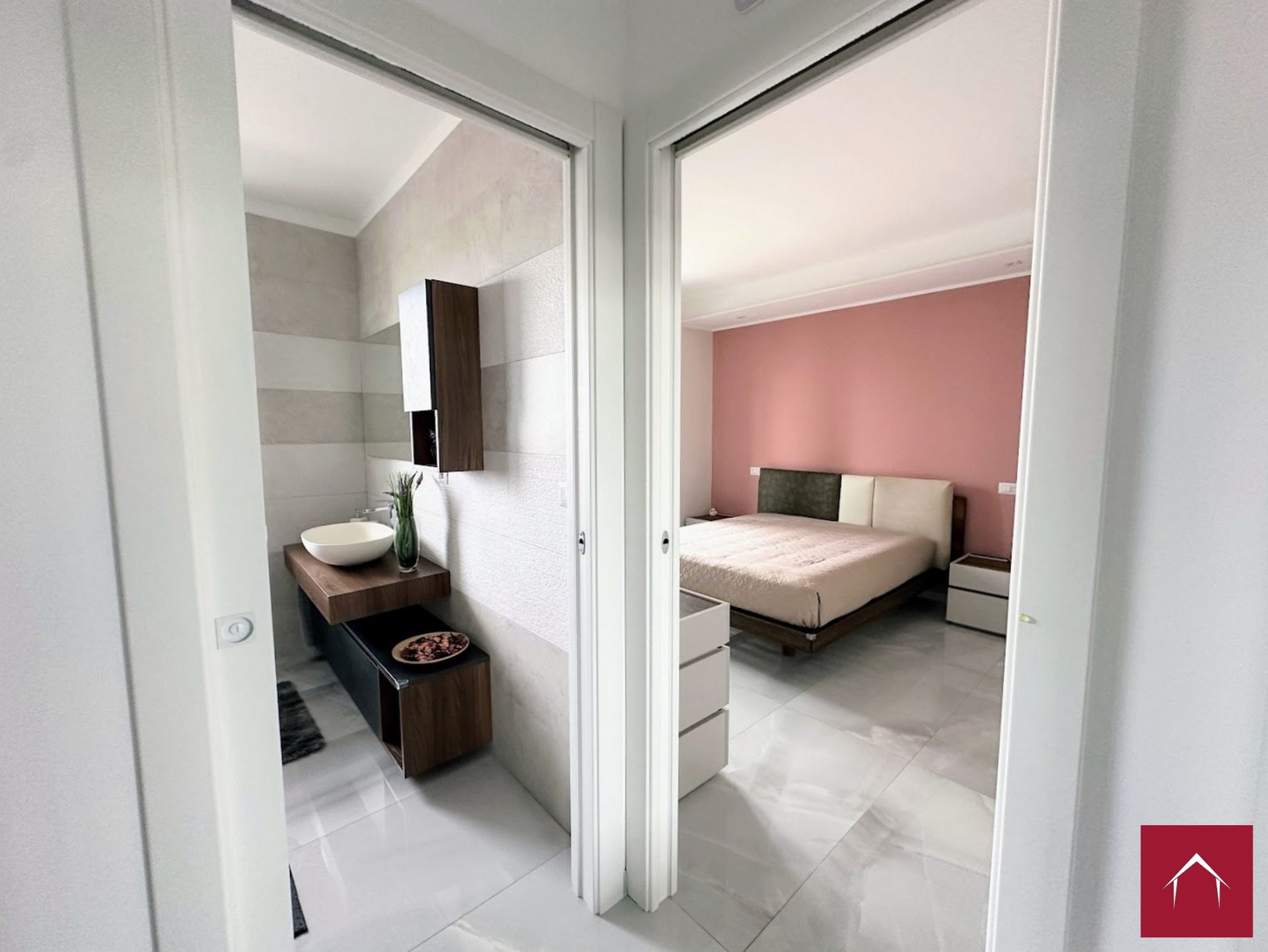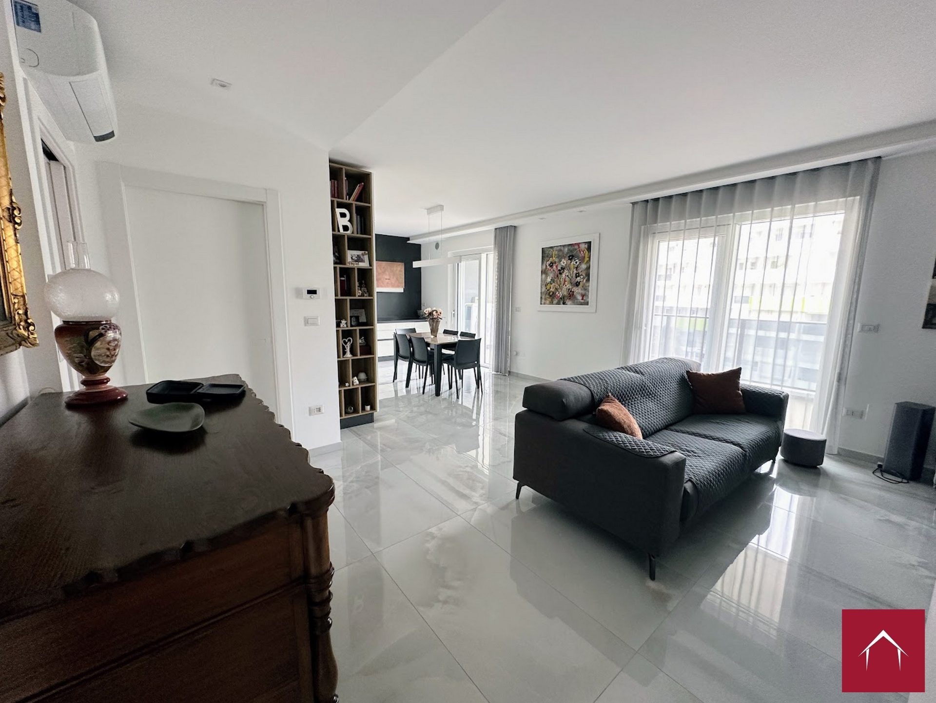 L’immobile è composto da ampia zona living, ampi balconi in zona giorno e zona notte, che rendono l’immobile luminosissimo e arieggiato, disimpegno, due camere da letto e due bagni.