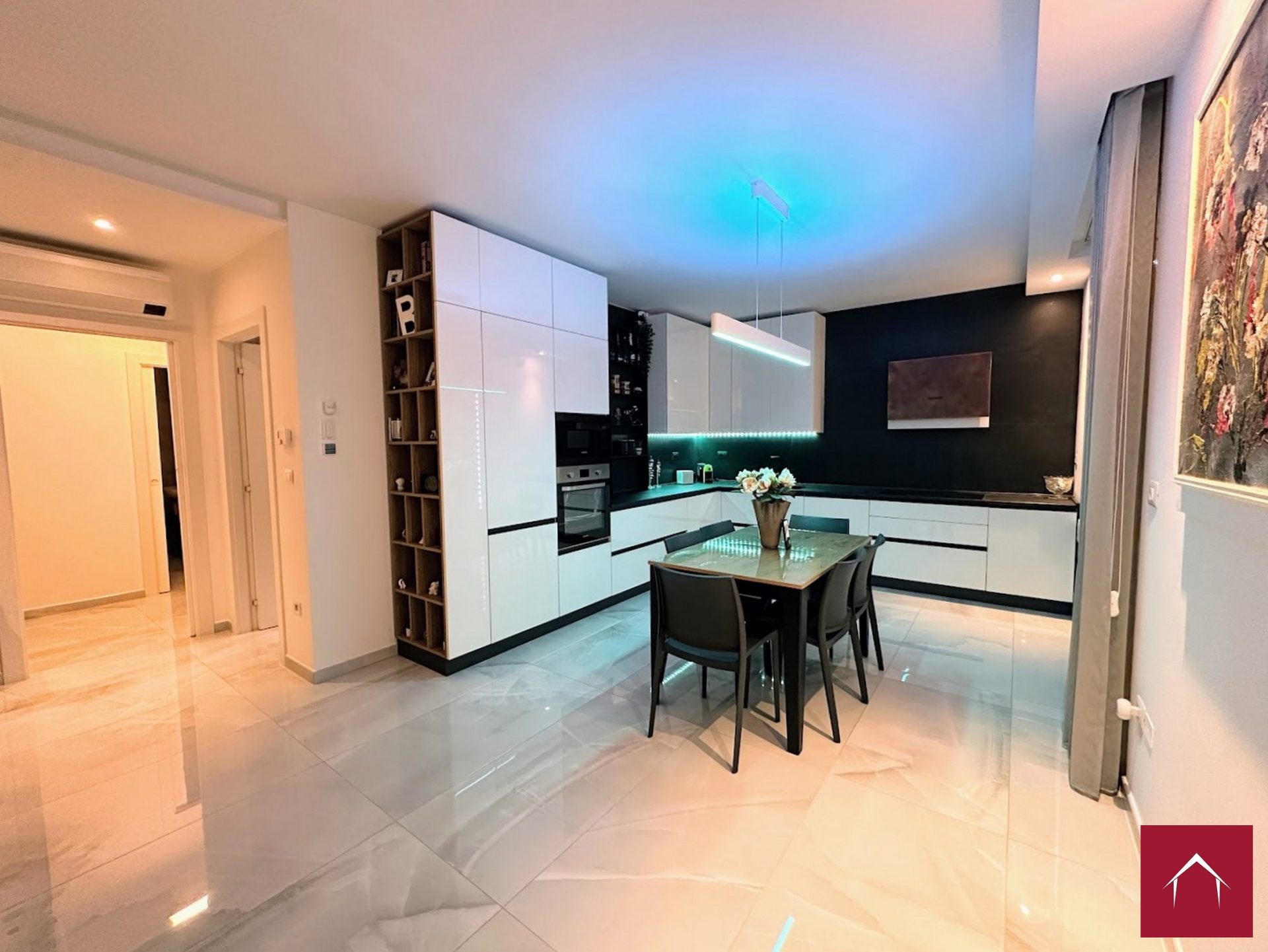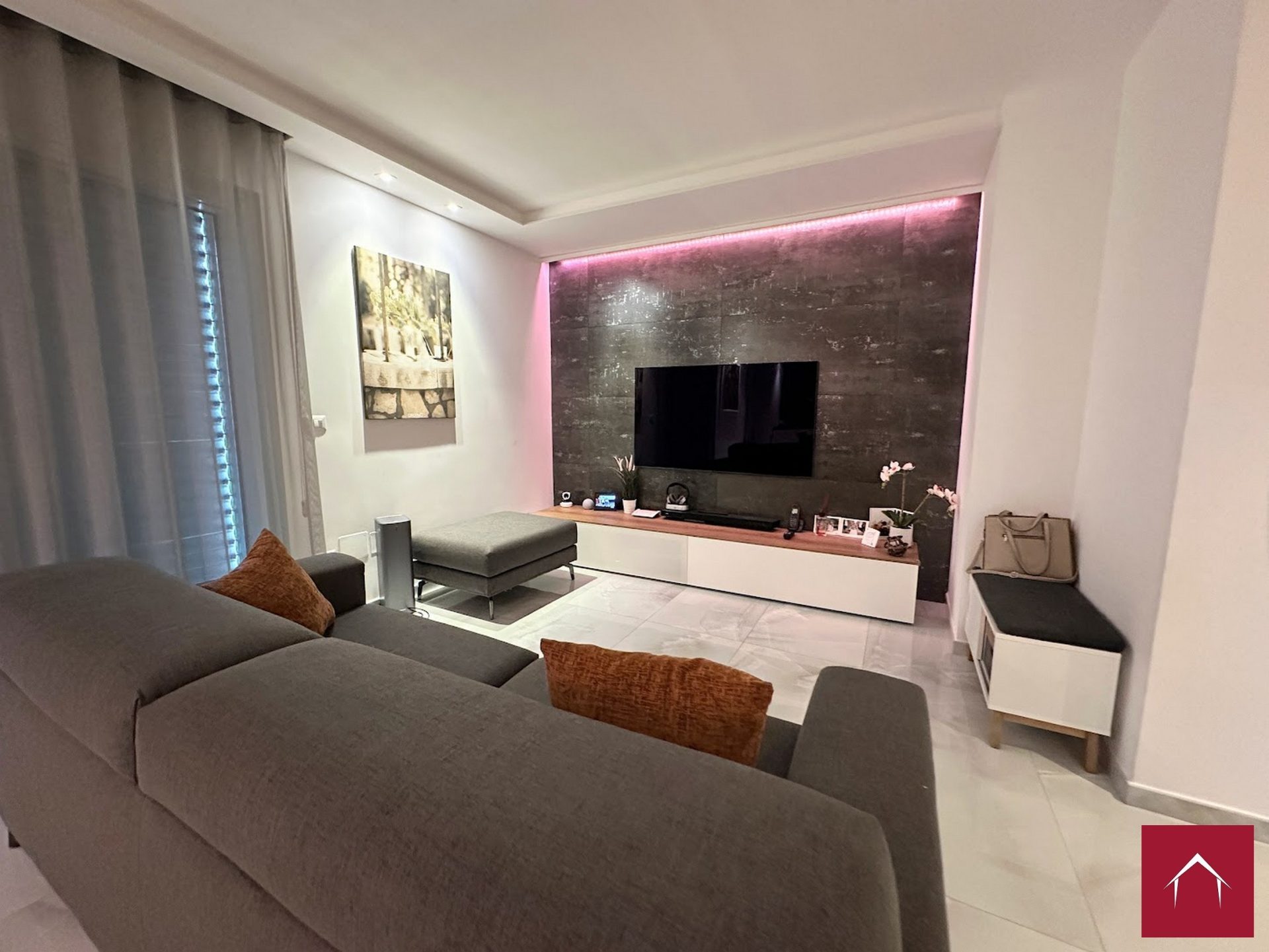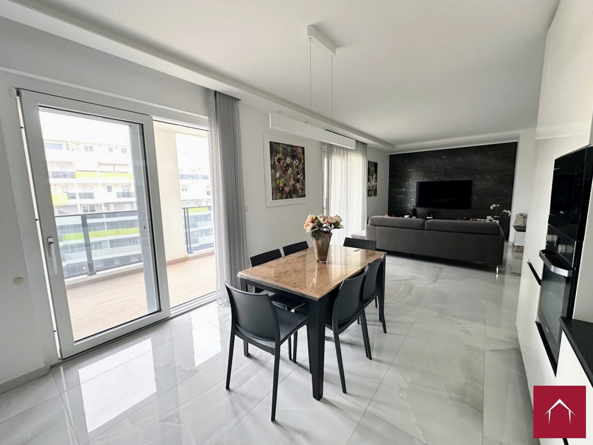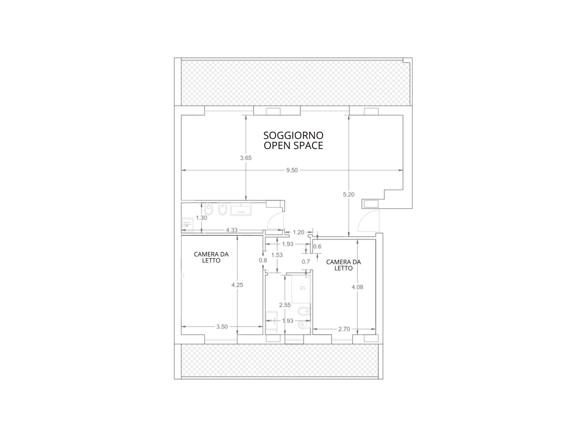 L’immobile è composto da ampia zona living, ampi balconi in zona giorno e zona notte, che rendono l’immobile luminosissimo e arieggiato, disimpegno, due camere da letto e due bagni.
