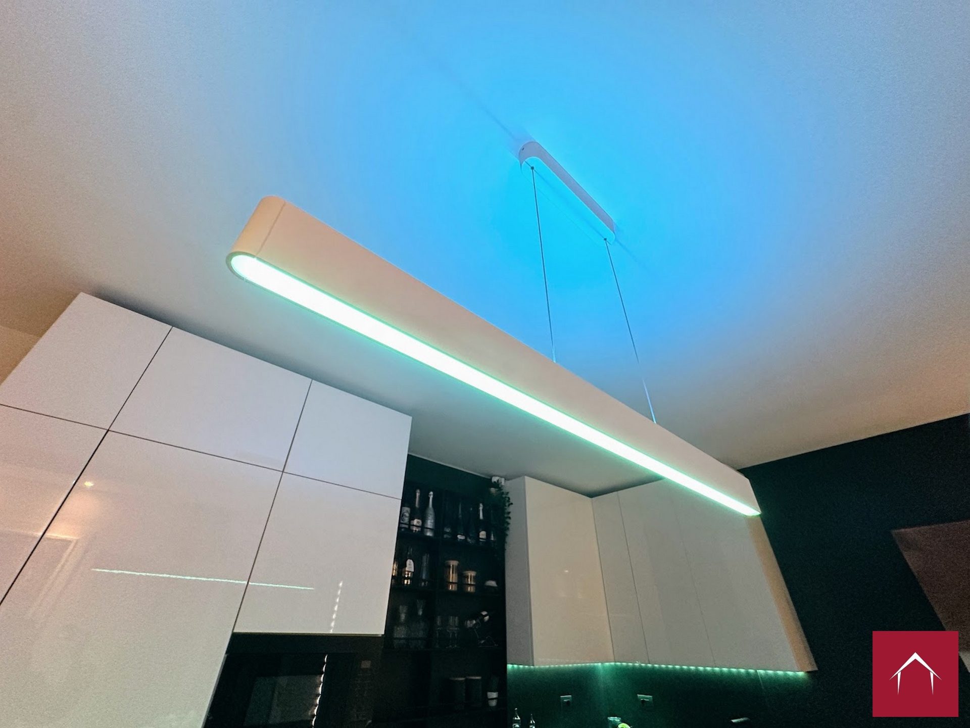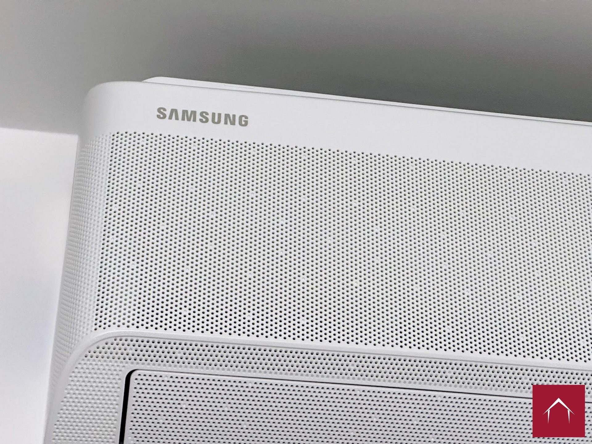 Controsoffitto perimetrale con illuminazione dimenabile domotica, condizionatori Samsung Wind Free ad alto risparmio energetico, domotici con getto d’aria diffuso.